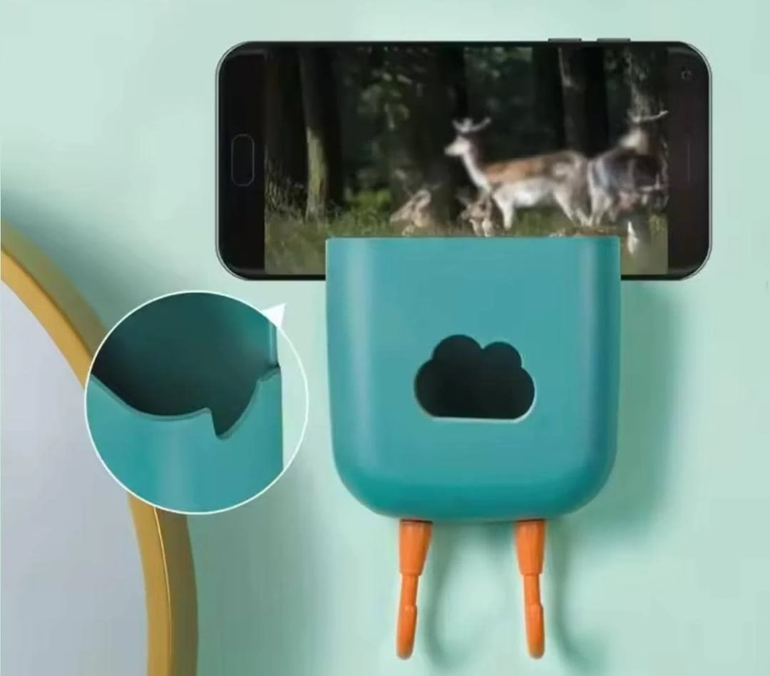 *حامل جوال متعدد الاستخدام مع لاصق وثقب لتوصيله الشحن مع اضافه 2خطاطيف علاقي* ?